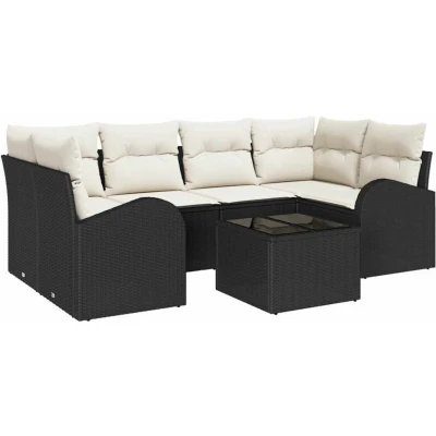 Garden Sofa Set 7 pcs Black 55 x 37 cm Poly rattan Vidaxl