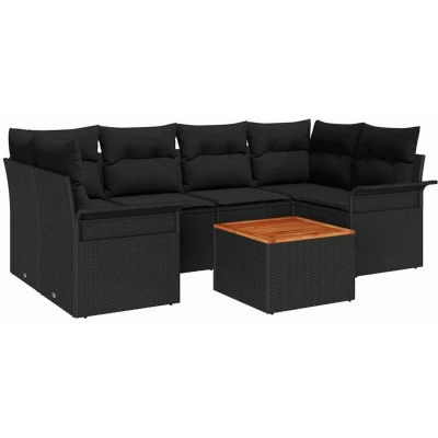 Garden Sofa Set 7 pcs Black Poly rattan Vidaxl