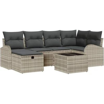 Garden Sofa Set 7 pcs Light grey 234 x 124 85 cm Poly rattan Vidaxl