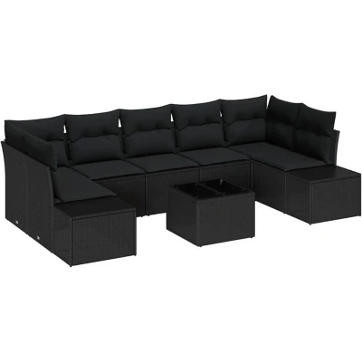 Garden Sofa Set 8 pcs Black Poly rattan vidaXL