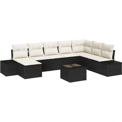ManoManoGeneral description The Garden Sofa Set with Cushions Poly Rattan brings modern design and functional elegance into your outdoor space. Perfect for garden and terrace setups, its woven texture exudes sophistication while ensuring resilience against seasonal changes. With its clean lines and seamless appearance, the set enhances any outdoor setting with a touch of contemporary style. Technical specifications Colour: Black Material: Poly rattan Overall dimensions: 62 x 62 x 69 cm (L x W x H) Weight: 64.7 kg Armrest height from seat: 20 cm Seating area: 55 x 55 cm (W x D) Frame material: Powder-coated steel Indoor / outdoor: Outdoor use only Delivery contains: 1 x Corner seat: 62 x 62 x 69 cm (L x W x H) 4 x Centre seat: 55 x 62 x 69 cm (L x W x H) 2 x Side sofa: 55 x 55 x 37 cm (L x W x H) 1 x Footstool 1 x Table: 68 x 55 x 73 cm (L x W x H) Assembly required: Yes EAN: 8721158967732 SKU: 3347187 Brand: vidaXL Usage Equipped with outdoor cushions made from weather-resistant fabric, the