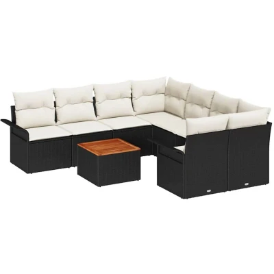Garden Sofa Set 9 pcs Black Poly rattan Vidaxl