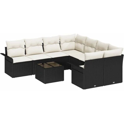 Garden Sofa Set 9 pcs Black Poly rattan Vidaxl