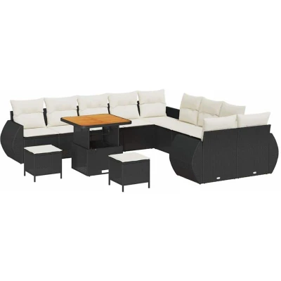 Garden Sofa Set Height Adjustable 13 pcs Black Poly Rattan Vidaxl