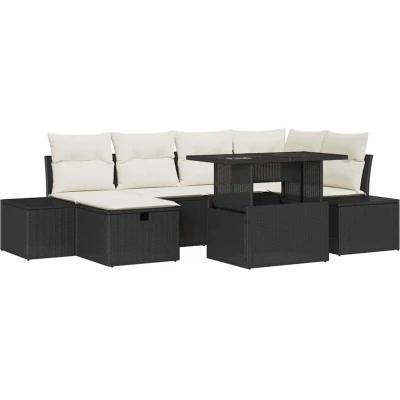 Garden Sofa Set Height Adjustable 7 pcs Black Poly Rattan Vidaxl