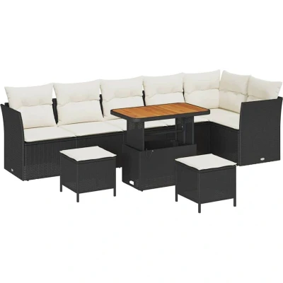 Garden Sofa Set Height Adjustable 9 pcs Black Poly Rattan Vidaxl