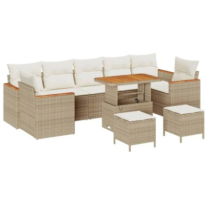Garden Sofa Set with Cushion 10 pcs Beige Poly rattan Vidaxl