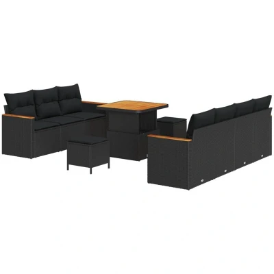 Garden Sofa Set with Cushion 10 pcs Black Poly rattan Vidaxl