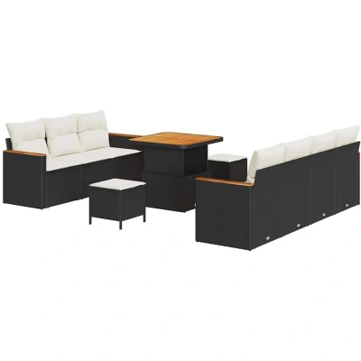 Garden Sofa Set with Cushion 10 pcs Black Poly rattan Vidaxl