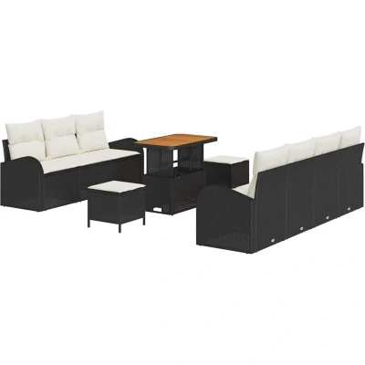 Garden Sofa Set with Cushion 10 pcs Black Poly rattan Vidaxl
