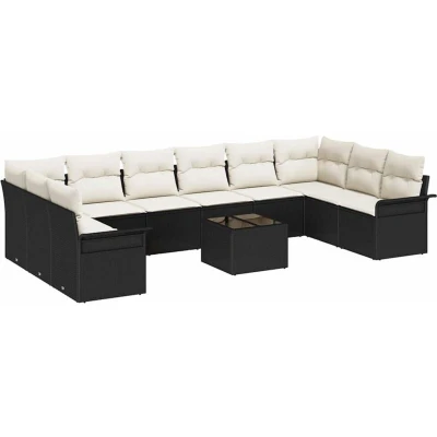 Garden Sofa Set with Cushion 11 pcs Black Poly rattan Vidaxl
