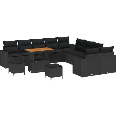 Garden Sofa Set with Cushion 13 pcs Black 90 x 55 71 cm Vidaxl