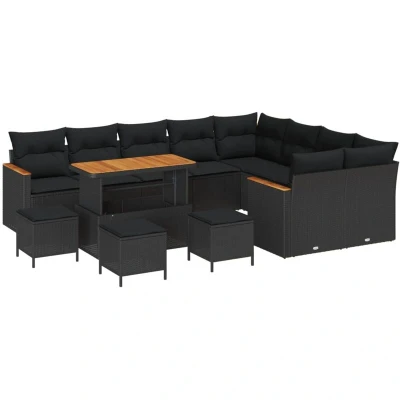 Garden Sofa Set with Cushion 13 pcs Black Poly rattan Vidaxl