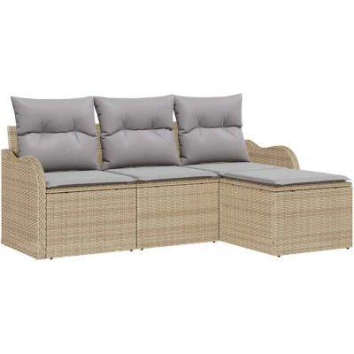 Garden Sofa Set with Cushion 4 pcs Beige Poly rattan Vidaxl