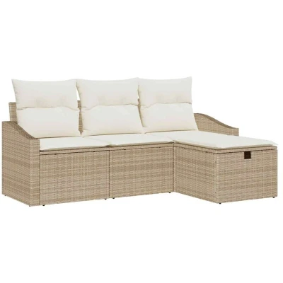 Garden Sofa Set with Cushion 4 pcs Beige Poly rattan Vidaxl