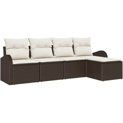 Garden Sofa Set with Cushion 5 pcs Brown Poly rattan Vidaxl