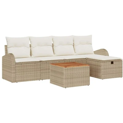 Garden Sofa Set with Cushion 6 pcs Beige Poly rattan Vidaxl