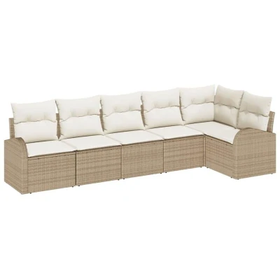 Garden Sofa Set with Cushion 6 pcs Beige Poly rattan Vidaxl