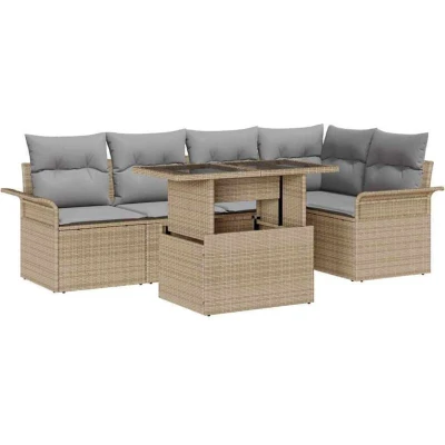 Garden Sofa Set with Cushion 6 pcs Beige Poly rattan Vidaxl