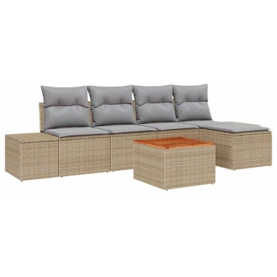Garden Sofa Set with Cushion 6 pcs Beige Poly rattan vidaXL