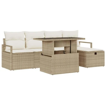 Garden Sofa Set with Cushion 6 pcs Beige Poly rattan Vidaxl