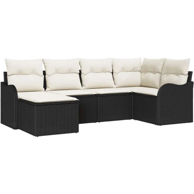 Garden Sofa Set with Cushion 6 pcs Black Poly rattan Vidaxl