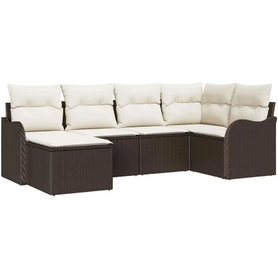 Garden Sofa Set with Cushion 6 pcs Brown Poly rattan Vidaxl