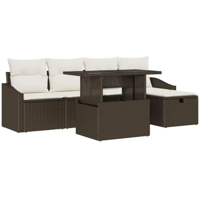 Garden Sofa Set with Cushion 6 pcs Brown Poly Rattan vidaXL