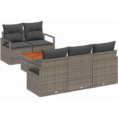 Garden Sofa Set with Cushion 6 pcs Grey Poly rattan vidaXL