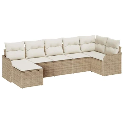 Garden Sofa Set with Cushion 7 pcs Beige Poly rattan Vidaxl
