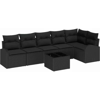 Garden Sofa Set with Cushion 7 pcs Black Poly rattan Vidaxl