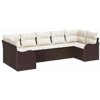 Garden Sofa Set with Cushion 7 pcs Brown Poly rattan Vidaxl