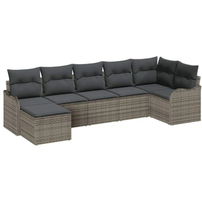 Garden Sofa Set with Cushion 7 pcs Grey Poly rattan Vidaxl