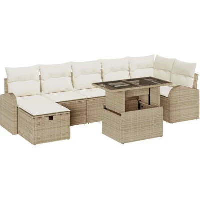 Garden Sofa Set with Cushion 8 pcs Beige Poly rattan Vidaxl