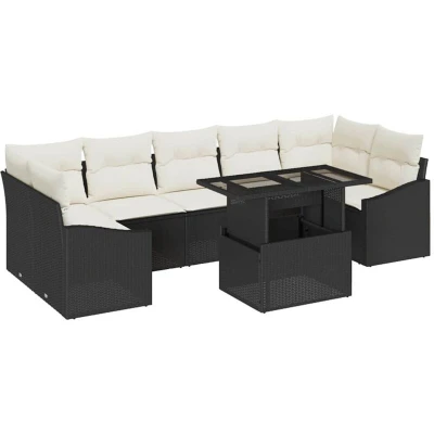 ManoManoGeneral description This Modern Garden Sofa Set seamlessly integrates style and functionality for your outdoor living space. With its clean lines and minimal ornamentation, this set offers a chic and comfortable seating solution, perfect for hosting or leisurely relaxation in your garden or terrace. Technical specifications Colour: Black and cream Material: Poly rattan Overall dimensions: 100 x 55 x 73 cm (L x W x H) Weight: 64.3 kg Seating area: 55 x 55 cm (W x D) Frame material: Powder-coated steel Delivery contains: 2 x Corner seat: 62 x 62 x 85 cm (L x W x H) 3 x Centre seat: 55 x 62 x 85 cm (L x W x H) 2 x Arm sofa: 110 x 62 x 85 cm (L x W x H) Table: 110 x 55 x 37 cm (L x W x H) Assembly required: Yes EAN: 8721158990679 SKU: 3348953 Compatibility and accessories Height-adjustable tabletop for coffee-to-dining conversion With water-resistant bag for storing items Installation Assembly required: Yes Usage Ideal for both intimate corners and large gatherings Modular nature fits a