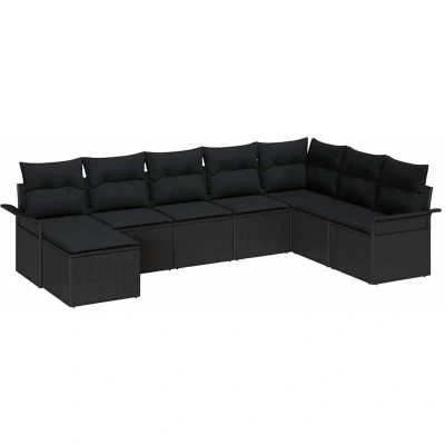 Garden Sofa Set with Cushion 8 pcs Black Poly rattan Vidaxl