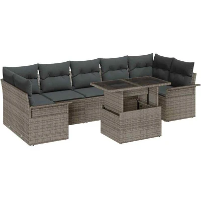 Garden Sofa Set with Cushion 8 pcs Grey Poly rattan Vidaxl