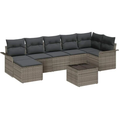 Garden Sofa Set with Cushion 8 pcs Grey Poly rattan Vidaxl