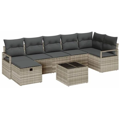 Garden Sofa Set with Cushion 8 pcs Light grey Poly rattan Vidaxl
