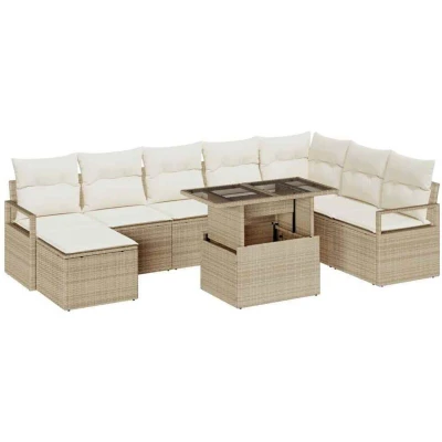 Garden Sofa Set with Cushion 9 pcs Beige and cream vidaXL