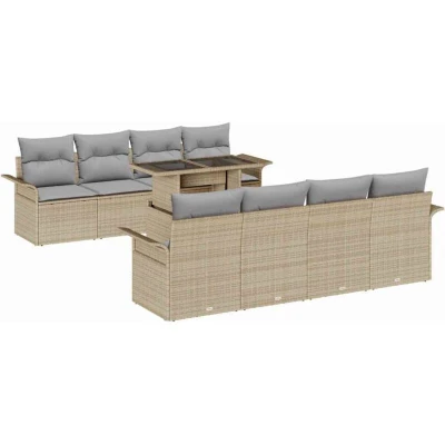 Garden Sofa Set with Cushion 9 pcs Beige Poly rattan vidaXL