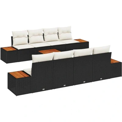 Garden Sofa Set with Cushion 9 pcs Black Poly rattan Vidaxl