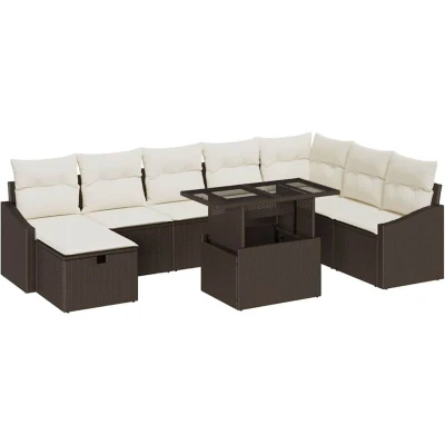 Garden Sofa Set with Cushion 9 pcs Brown Poly rattan Vidaxl