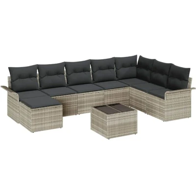 Garden Sofa Set with Cushion 9 pcs Grey Poly rattan vidaXL