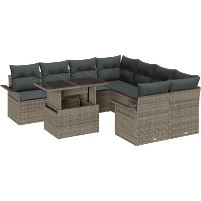 Garden Sofa Set with Cushion 9 pcs Grey Poly rattan Vidaxl