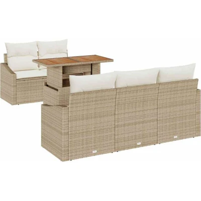 Garden Sofa Set with Storage 6 pcs Beige Poly rattan Vidaxl