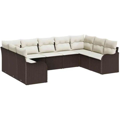ManoManoGeneral description This Garden Sofa Set with Cushions is perfect for stylish outdoor lounging. With its modular design, you can easily change the arrangement to suit your garden or terrace, blending seamlessly with a modern look. The inviting woven texture and sleek rectangular shape give it a touch of elegance. It's ideal for hosting outdoor gatherings or enjoying some quiet time, catering to those who appreciate contemporary design and practicality. Technical specifications Colour: Brown and white Material: Poly rattan Adjustable Feet: Yes Modular: Yes Durable: Yes UV-resistant materials: Yes Assembly required: Yes Components included: 2 x Corner seat 5 x Centre seat 2 x Arm sofa EAN: 8721288347985 SKU: 3354527 Brand: vidaXL Care & Maintenance To keep it in tip-top shape, it's advisable to use protective covers when it’s not in use. Storing the cushions dry and giving the rattan a gentle clean can help maintain its appearance and longevity, making it easy to care for over time.