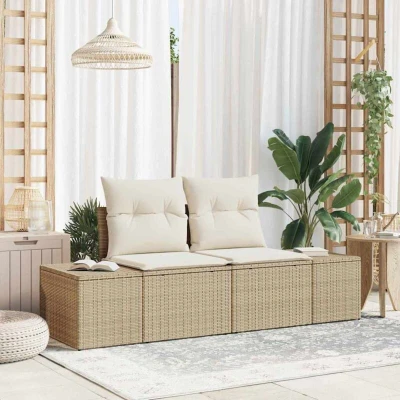 Garden Sofa with Cushion Beige 123 x 62 69cm Poly Rattan Vidaxl