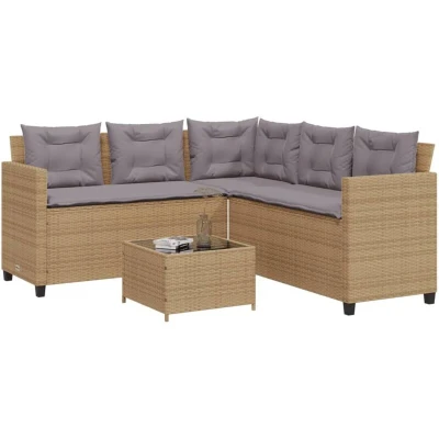 Garden Sofa with Table and Cushions L Shaped Beige Poly Rattan Vidaxl