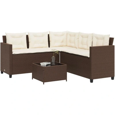Garden Sofa with Table and Cushions L Shaped Brown Poly Rattan Vidaxl